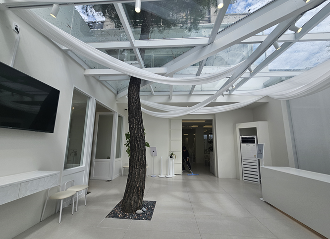 가장 인상적이었던 건, 기존에 있던 소나무를 그대로 살려서 건축했다는 점.